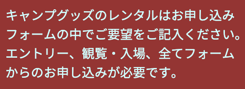 *入場料は含まれます*宿泊、テントやタープ、テーブル等の設置、BBQなど全てOK!