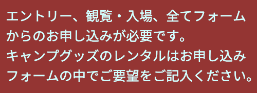 *入場料は含まれます*宿泊、テントやタープ、テーブル等の設置、BBQなど全てOK!